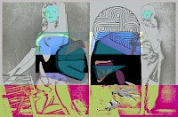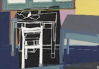 She is occupied with the ways in which invisible forms of self organisation are working within certain systems. And how they attach themselves each time to the systems own logic. Interior, if not domestic spaces often serve as settings for her drawings and collages, from which dream-like futuristic enactments between human and machine-like forms unfold. In the nineties, hand-made paper works gave way to computer graphics, while text has always featured alongside images, underlining the message of Van Kerckhoven's proud, sometimes exhibitionist female figures, like song-lyrics. Music plays an important role in her creative production in parallel to her visual output, and she and Danny Devos have stood as a key pair of the Antwerp experimental music scene under the band name Club Moral (1981-now).